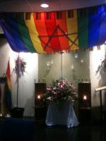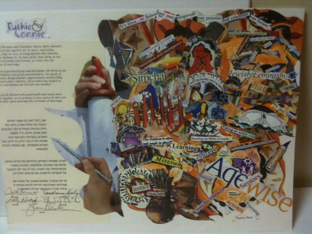 On Tuesday, July 26, 2011, I had the great pleasure of attending the wedding of Connie Kurtz and Ruthie Berman, two dear friends who have done so much for so many and were instrumental in keeping me sane as I went through my own coming out process 21 years ago. They had been living in a domestic partnership for 36 years waiting for gay marriage to become legal in New York and were married in a synagogue and under a rainbow colored Chupah (awning) as is customary at traditional Jewish weddings just two days after New York became the sixth and largest U.S. state to recognize same-sex weddings. It was one of the most joyous weddings with many friends and family members in attendance.